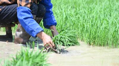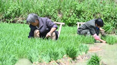 初夏时节农事忙。5月30日,十堰市郧阳区安阳镇陈营村农民在田里插秧。郧阳区水利部门科学调度80余座水库保水蓄水,保证全区10万多亩水田有效灌溉,当地农民抢抓季节插秧。视界网王涛摄