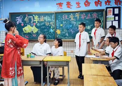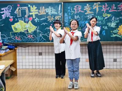 5月31日,武汉市江汉区西马路小学六年级(1)班的师生们,欢聚在校园教室里,共同在校庆祝小学毕业离校前的最后一个六一国际儿童节。同学们自编自演文艺节目,展现自已各方面才华,感谢回报学校和教师们六年来,对他们的无微不至关爱教育培养成为德智体美劳全面发展的好少年!