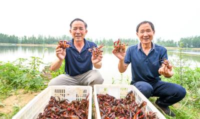 哥哥刘新龙嘉鱼县礼德农业发展有限公司董事长,弟弟刘福林监利县跃进湖水产养殖专业合作社理事长拿着丰收龙虾喜的合不拢嘴。刘福林说环境好、水质好肯定养出好虾,经40天的喂养龙虾亩产350斤,销往北京虾嫂,每亩虾的收入近3000元。