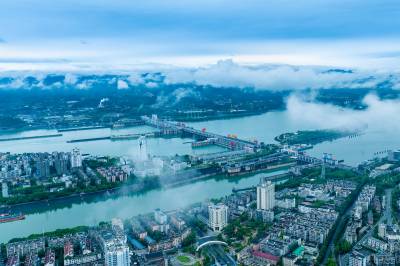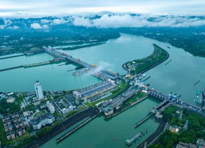 2023年6月5日,湖北宜昌长江葛洲坝水利枢纽云雾弥漫,清爽怡人。据水利部信息中心编制的“全国水雨情信息”显示:2023年6月5日14时,长江葛洲坝5#站水位63.82米,宜昌站水位44.64米,宜昌站流量19100立方米每秒。