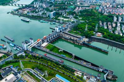 葛洲坝水利枢纽是是我国自行设计、建造的长江上第一个水利枢纽工程,具有发电、航运、泄洪、灌溉等综合效益,水库容量15.8亿立方米,与总库容393亿立方米的三峡水库共同承担长江防汛抗洪重任,时至6月上旬,长江仍保持一江清水向东流(视界网 王耿 摄)。
