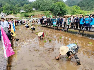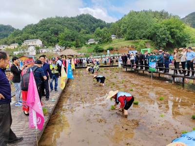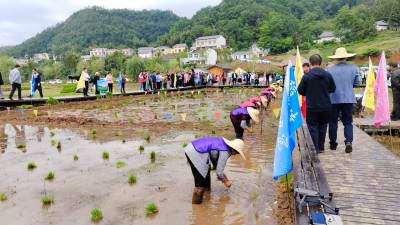 (视界网 邱亮 张雄 摄)6月6日,2023年竹山县擂鼓镇西河村首届插秧比赛暨“乡约竹山 播种希望”主题活动在擂鼓镇西河村举办。