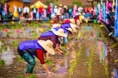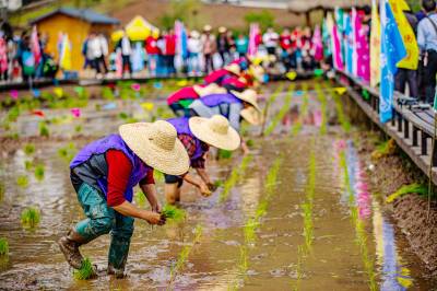 6月6日,是农历芒种节。当日,竹山县擂鼓镇西河村举办“乡约竹山、播种希望”为主题的首届稻田插秧节系列活动。活动现场精彩纷呈,广大游客及当地村民热情参与,看文艺表演、观传统牛耕、观抛秧插秧比赛,喝“栽秧酒”、品特色小吃,体验农耕乐趣,感受田园生活。按照传统节气举办插秧节等农事节庆也是竹山县依托当地美丽乡村的农业资源,打造农业创意园,推动乡村旅游产业的众多举措之一。