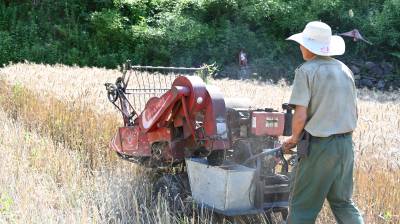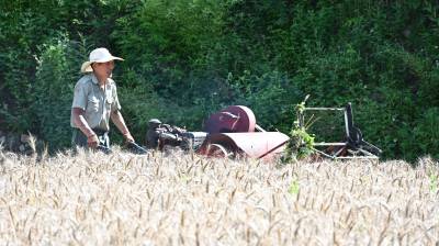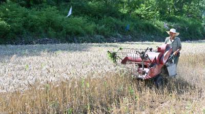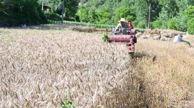 6月6日,芒种。雨后初晴,十堰市郧阳区南化塘镇四泉村农民抢抓晴好天气,用小型收割机抢收小麦,减少损失,确保颗粒归仓。视界网王涛摄