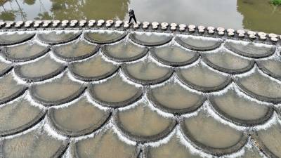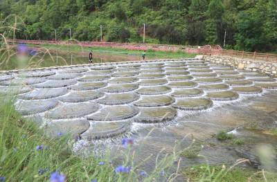 2023年6月8日,使用无机航拍洪水退潮后的十堰市房县马尾河,图为马尾河化龙堰镇上湾村段鱼鳞坝清流潺潺。房县境内314条河流分别对汇入国家南水北调中线工程核心水源区丹江口水库、长江流域汉江。近年来,该县共抓河流大保护,深耕“暗访+督办+整改”的河流管理责任制落地,实施“水景观、水生态、水经济”的有机融合。目前,全县河流常年达到水清河畅。