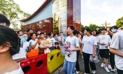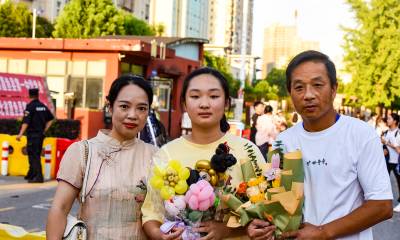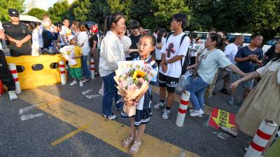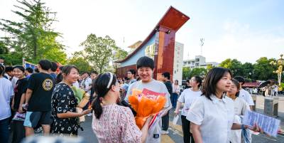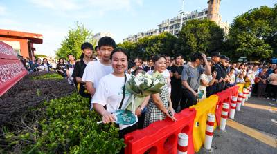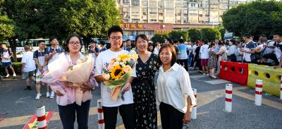 6月9日18时15分,在嘉鱼一中考场随着生物课考完,考生奔跑出校门,亲人送上祝贺鲜花,标志嘉鱼高考圆满结束。