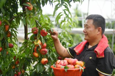 通城返乡创业青年金强,2019年同当地政府投资600多万建设120亩设施农业,成立果蔬种植合作社,从浙江引进新技术,新品种,种植蟠桃,黄挑等一系列特色水果,不仅造福了自己,还带动脱贫户家门口就业,特色种植业成为采摘旅游业,增加了农民收入。