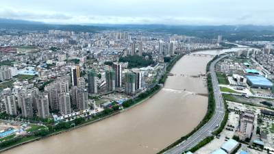 2023年6月18日,十堰市房县洪水安全过境县城中心区,坚固河堤守护着县城防洪安澜。房县城区55公里堤防工程原来由砂石垒砌,险象环生。该县经过多年分期、分段加固城区河道堤防工程,绿化美化堤岸、护坡,提升工程防洪保安能力。目前,当地城区防洪工程防洪功能由原来5年提高到50年一遇洪水标准,保护城区20多万人口生命安全。