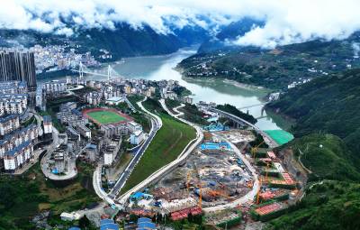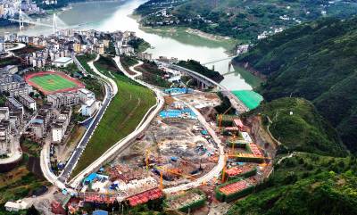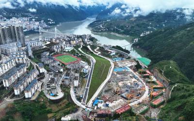 6月18日,巴东县光明中学高中部新校舍工地塔吊林立,正在如火如荼建设中。
