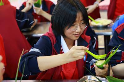 6月20日,竹溪县一中举办2023年“浓情端午,粽香校园”主题活动,通过学生亲自动手包粽子让学生更真切的感受端午习俗的内涵,了解包粽子方法以及粽子馅料搭配等具体工艺,以亲身体验的方式锻炼学生的动手实践能力。