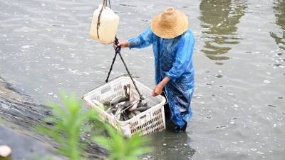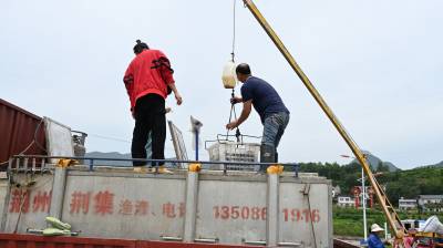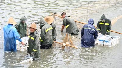 宋代范仲淹有诗云:“江上往来人,但爱鲈鱼美”。湖北省十堰市郧阳区南化塘镇利用滔河、兆河的优质水源,大力发展冷水鱼养殖业,带动当地村民致富。6月20日,立夏临近,该镇一家冷水鱼养殖基地捕捞鲈鱼供应市场。视界网王涛摄