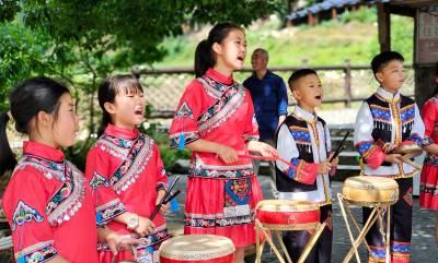 (通讯员 王恕森 段薇)“核心价值观,内容要记全……”6月20日,宣恩县沙道沟镇中心小学三棒鼓社团的孩子们受邀在宣恩县彭家寨景区展演三棒鼓,赢得了现场观众的阵阵掌声。