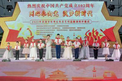 2023年6月26日,洪湖市“同心永向党 筑梦新时代”迎接建党102周年红色文艺作品展演在城区荷花广场举行。来自学校、老年大学艺术团、社区和社会各界群众文艺团体等8支代表队参加演出。他们用合唱《没有共产党就没有新中国》舞蹈《江山》《党旗更鲜艳》《再把碟儿敲起来》、情景剧《这一仗打得真漂亮》《当小罗卜头遇见雷锋》课本剧《满江红》等表演形式,讴歌党的丰功伟绩,重温党的艰巨历程、赞美新生活,筑梦新时代。这次由洪湖市委组织部、宣传部、洪湖市关心下一代工作委员会、老干部局、共青团洪湖市委、市妇联、教育局、文旅局、洪湖市融媒体中心等单位联合组织大型演出活动,吸引了广大市民前来观赏。