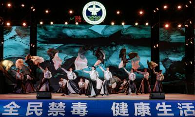今年6月26日是第36个国际禁毒日。当晚,天门市在陆羽广场隆重举办“6·26”国际禁毒日禁毒晚会。本次晚会由天门市禁毒委主办,市公安局、市电信公司、市烟草专卖局承办,市委文明办、团市委、市妇联、市教育局、市文旅局、市卫健委、岳口镇、石家河镇、胡市镇、蒋湖农场、竟陵街道办事处、天门职业学院协办。主题为“全民禁毒健康生活”。晚会在歌伴舞《我是天门人》中拉开序幕。群口快板《禁毒防毒创文明》,巧妙地将禁毒知识转化为群众喜闻乐见的“顺口溜”;由公安干警表演的男声小组唱《给明天的承诺》,展现了天门禁毒人对禁毒事业的无限热爱;天门渔鼓《珍爱生命拒毒品》,用通俗易懂的语言警示市民珍爱生命、远离毒品;配乐诗朗诵《禁毒扬善盈正气》,彰显了公安机关严厉打击毒品犯罪的决心;情景剧《新客》,讲述了毒品害人害己的故事;独唱《无毒的未来》、舞蹈《咏柳》、合唱《让爱启航》、舞蹈《国风墨韵》、碟子表演唱《请到我们这里来》、歌舞《领航》……一个个精心编排的节目轮番上演,为观众带来一场视听盛宴。现场还设置了禁毒宣传展板和展牌,普及毒品常识、危害,教育引导广大市民提高识毒、防毒、拒毒的意识和能力,自觉抵制毒品诱惑,共筑禁毒防线。近年来,该市通过深入开展“雷火”“清源断流”等行动,深挖贩毒团伙、深挖制毒线索、深挖吸毒网络,开展集群战役,全链条打击毒品犯罪,有力维护全市社会治安大局稳定和人民群众生命财产安全。 (视界网刘银斌 刘畅摄)
