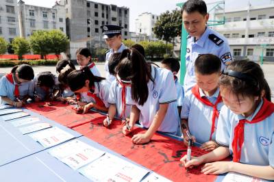 以“6·26国际禁毒日”为契机,进一步筑牢校园禁毒安全防线,守护未成年人健康成长。活动中,民警通过从“什么是毒品”“毒品的危害”“拒毒防毒的要点”面对面向学生科普禁毒知识,让学生了解毒品的危害,学习掌握抵御毒品的方法,提高同学们的自我保护意识及识毒、拒毒、防毒的能力。警校携手签名承诺争当“禁毒宣传员”,实现“教育一个孩子、带动一个家庭、影响整个社会”的禁毒目标,共享健康生活、共建无毒校园。(视界网 刘东 邵强 摄)