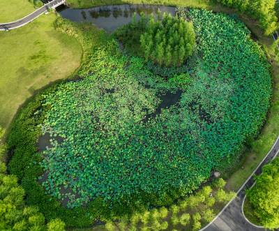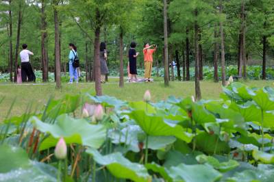 眼下,雨水花园4个莲花池,约2000平方米的荷花、莲花艳丽绽放,成为宜昌近期最热门网红打卡地之一。