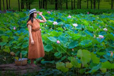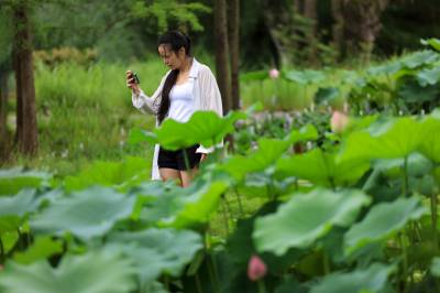 7月4日,宜昌市点军区五陇湿地荷花开得美轮美奂,吸引了大批市民在此拍照游玩。