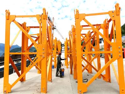 7月9日,巴东县鑫盛船务有限公司工人正在对新塔吊刷漆。