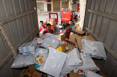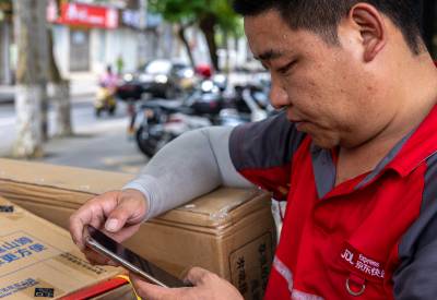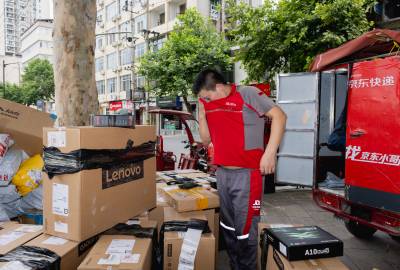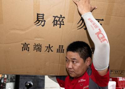 7月12日,恩施,高温晴热天气。在恩施市舞阳坝民族广场京东快递临时缺货区,快递小哥们在高温里装卸快递。 快递小哥黄康华说:“我们从早上7点工作到下午6点半,中午最热的时候也是我们最忙的时候。”他表示,夏季高温,京东快递员有高温补贴,每月补贴300元左右。