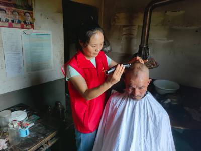 义工志愿者为五保老人理发、量血压,并积极参加辖区内池塘、水库等水域巡查。