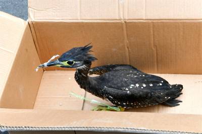 7月13日19时许,保康县公安局森林警察大队接到热心市民罗先生报警称,在该县城关镇三溪沟村3组发现一只稀有“怪鸟”,因被暴雨淋湿而无法活动。