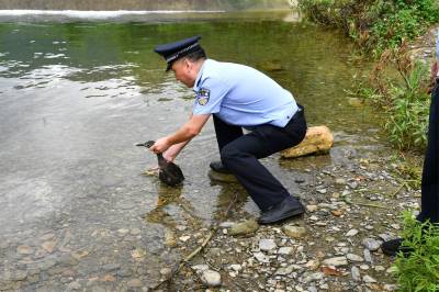 2023年7月14日,保康县公安局森林警察大队民警携手热心市民,成功救助一只国家“三有”野生保护动物鸬鹚,并将其放生。