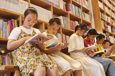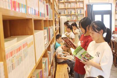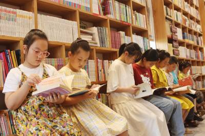 枝江:乡村文化驿站充电忙 7月15日,小朋友在枝江市孙家港村生态园文化驿站看书、阅读、朗读。该市通过建设乡村文化驿站,购买各类图书,让小朋友在家门口阅读课外读物,让农民朋友学习掌握科技知识和生活知识,推进全民阅读。视界网刘卫东摄