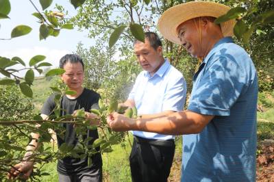7月14日,竹山县林业科技特派员陶勇(左)深入该县上庸镇九里潭村聚兴花椒基地,围绕花椒病虫害防治、栽培技术、养果、采摘、烘烤技术等内容,为种植户进行通俗易懂的讲解,传授了种植管护中的一些“诀窍”,并现场示范了花椒树整形修枝、采摘技术,耐心地解答他们在生产过程中遇到的难题。
