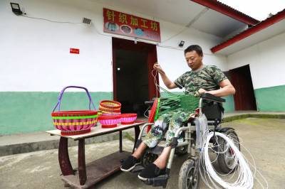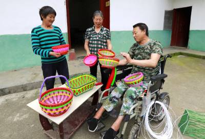 “闲着也是闲着,慢慢干呗,再难也得干,要不收入从哪里来?编织的花篮等物品卖点钱可以贴补家用,还充实了我的日常生活。” 王后伍说,虽然瘫痪了,但是要立志做一个有尊严、有价值、有能力的“健全人”,通过自己的辛勤劳动,活出精彩的人生。 (视界网 朱本双 摄)