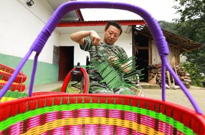 7月16日,笔者走进王后伍的家,看到他正坐在轮椅上编织花篮。他自信、坚强、上进,除了双腿不能站立,与常人无异。今年47岁的王后伍家住竹山县柳林乡民主村二组,2005年出门打工发生车祸造成了双下肢瘫痪。这对于王后伍一家来说是沉重的打击,一家人苦苦支撑,希望他能够康复,但事实上,他已经再也不能站起来了,这让家庭的责任和重担又增加了许多。
