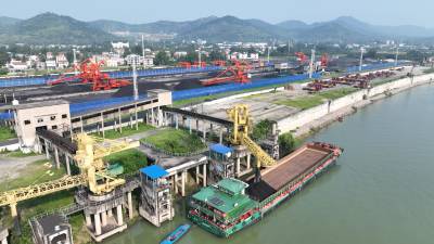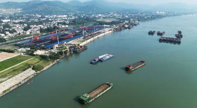 7月18日,襄阳港务公司港口内,一艘艘船只停泊在余家湖港等待装船,呈现一派繁忙景象。自6月中旬以来,余家湖港已发运船只21条、发运煤炭约2.6万吨,为下游电厂迎峰度夏煤炭保供贡献力量。截至上半年,港口大宗货物中转量67.63万吨,同比上升35.78%,是余家湖港建港30年来中转量之最。