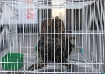 经工作人员仔细辨认,该动物为国家二级重点保护动物灰林鸮,是猫头鹰的一个种类。主要栖息于山地阔叶林和混交林中,主要以鼠类、甲虫、黄虫等鞘翅目昆虫为食。(视界网程平 杜登艳 摄影)