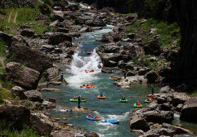 湖北堵河源:成群鸳鸯戏清波