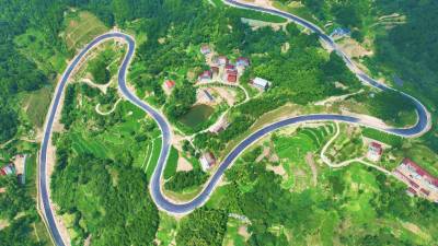 英山:鸟瞰出山“天路” 如巨龙盘踞群山上
