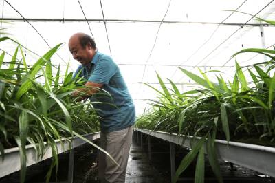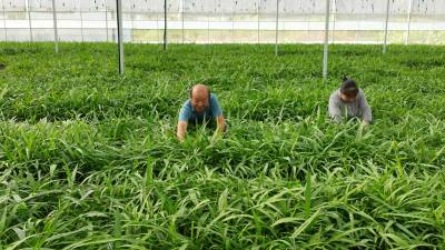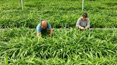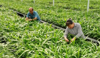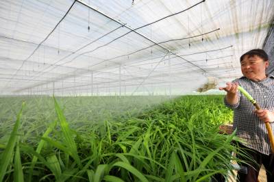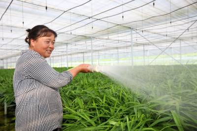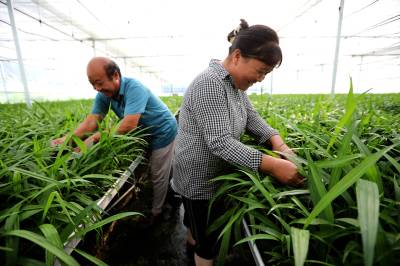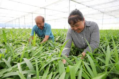 2023年8月9日,十堰市房县门古寺镇狮子岩村中药材白芨种苗繁育基地,当地农民正在对白芨种苗浇水、人工清理杂草,该基地年均繁育中药材白芨、苍术、黄精种苗2000万株。房县素有“华中药库”之称。近年来,该县实施“公司+合作社+农户”的模式,推行中药材种苗繁育、种植、深加工融合发展,做大做强药材产业,提升市场核心竞争力,促进乡村振兴。目前,当地中药材种植面积超过50万亩,中药材企业生产的“房陵牌丹参、房陵本草牌柴胡、房陵本草牌白及、武当牌克林新、百草传奇”获得湖北名牌产品;“房陵本草及图、武当及图”获得湖北省著名商标;房县“虎杖、北柴胡、白芨、绞股蓝”通过国家地理标志产品认证,精深加工的北柴胡、中药材制成片剂、胶囊等产品远销日本、韩国、越南等“一带一路”17个国家和地区,年均实现产值20亿元,有效带动了农民增收致富。