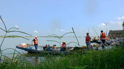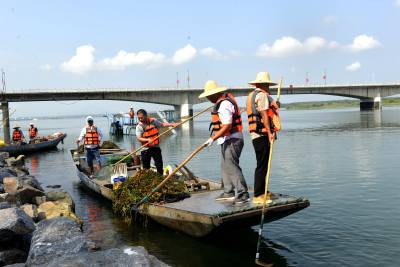 湖北老河口:夏日清漂守护汉江“碧水清波”