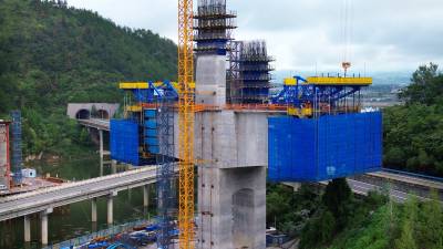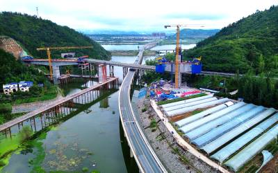 柳家河福银立交大桥是西十高铁全线重难点工程之一,全长456.75米,先后跨越柳家河、G209国道、福银高速,最大跨度136米,主塔高68米,目前该大桥正在加紧主塔以及桥梁的同步施工建设。