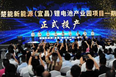 2023年8月28日,位于宜昌市夷陵区龙泉镇的楚能新能源(宜昌)锂电池产业园项目一期正式投产。在布局了1条储能电池、2条动力电池和1条圆柱电池生产线的1号电芯车间,1000多台套设备高速运转,一块块“宜昌制造”新能源锂电池经过匀浆、涂布、卷绕等30多道工序后从生产线上新鲜“出炉”。该项目一期350天全要素保障到位,365天实现投产,标志着重大项目建设的“宜昌速度”再次被刷新。一期投产达效后预计年产能40GWh,年工业产值280亿元、税收16亿元。