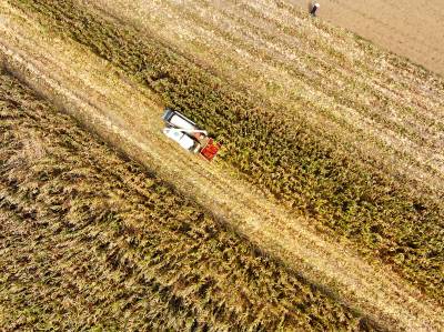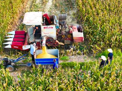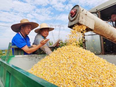 磷矿镇 梁桥村主任樊永平说:“今年夏玉米亩产和销价都高于往年,夏玉米收获喜人,按今天收割后销售情况来看亩平可增收 500 多元。”(特约记者钟国庆摄)