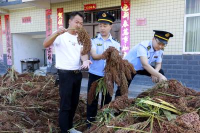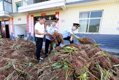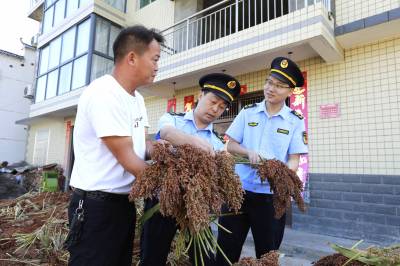 9月4日,竹山县市场监管局溢水市场监管所工作人员深入溢水镇小东川村益聚家庭农场,了解高粱加工晾晒等情况。该家庭农场把400亩撂荒地种上高粱,今年丰产,亩产达400公斤,带动周边农户增收致富。
