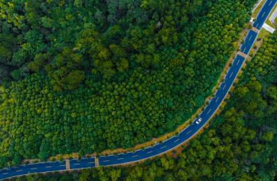 9月5日,应城市大洪山余脉层林浸染,斑斓多彩,一条玉带蜿蜒其间,勾映着沿线美丽风景,引来游客前往风之驿观景台等地游玩。