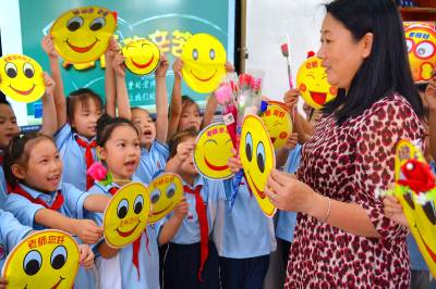 当日,在9月10日第39个教师节到来之际,该校开展“‘我的笑脸’送老师”活动,学生们通过亲手剪制祝福“笑脸”、制作祝福卡,当作礼物送给老师,表达对老师的节日祝福和感恩之情。