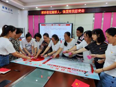 在第39个教师节来临之际,武汉市江汉区惠康里小学党支部,在9月6日举行了“躬耕教坛育新人,强国有我担使命”主题党日暨庆祝第39届教师节教育活动。全体党员、教师学习最美奋斗者马丹老师事迹,重温《新时代小学教师职业行为十项准则》并宣誓承诺,纷纷表示将永葆教育初心,牢记“立德树人”根本任务,潜心以“爱”育人,以“爱”导行,呵护每个生命适性成长,努力成为党和人民满意的“四有”好老师。