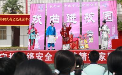 当日,由郧阳区委宣传部、区文旅局、区教育局、区财政局主办,郧阳区民俗文化展演中心承办的“戏曲进校园”系列活动走进郧阳区青曲镇初级中学和郧阳区青曲镇中心小学,戏曲名家为学生们介绍戏曲基本知识、戏曲理论、戏曲名家等,讲解了生、旦、净、丑等行当的特点及代表角色,让孩子们了解戏曲的表演程式和各具特色的唱念做打技艺,引导师生感受国粹的特色和艺术魅力,增进师生对戏曲艺术的了解,厚植热爱传统艺术的思想情感,助力戏曲艺术之花在校园绽放。
