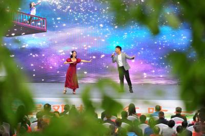 2023年9月26日,宜昌市夷陵区邓村乡茶农在三峡•邓村云端品秋季活动现场开心观赏文艺节目。连日来,在2023年中秋、国庆佳节到来之际,宜昌市夷陵区举办“欢度中秋 共庆国庆”系列文化惠民活动,夷陵歌舞团和各地民间艺术团立足基层、服务群众,组成文艺轻骑兵志愿者服务团队,走进各单位、乡镇村(社区)基层、厂矿企业等,以公益文化展演为主要内容开展文艺志愿服务活动,以高质量的文化供给增强城乡群众的文化获得感、幸福感,满足人民群众的精神文化需求,为城乡统筹发展筑牢文化根基。(视界网 张国荣 摄)