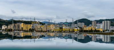 9月30日,竹山县潘口乡悬鼓洲村村庄实行“净化、亮化、美化、文化”后显得格外靓丽。