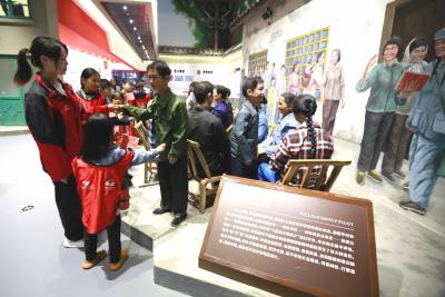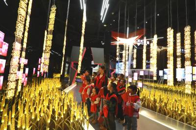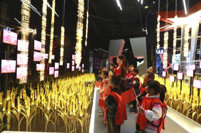 留守儿童在家门口的展览馆里过国庆节