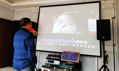 10月2日上午,中雨。十堰市郧阳区五峰乡大石沟村1组63岁的村民尚大明,在自家装修一新的歌厅,跟着投影大屏幕引吭高歌,自娱自乐,半天唱了几十首歌曲。洪亮的歌声虽然不专业,像是在吼叫,但歌声赛过雨声,在村庄里回荡。听到激情歌声的村民们说:“现在的乡村农民真快活,家里有自己的KTV,不用出门去旅游,在家里也生活的挺自在!”(视界网周宗华 摄) 作者地址:十堰市郧阳区五峰乡大石沟村;电话:15727082525.