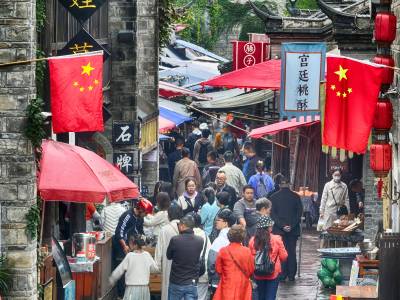2023年10月3日,湖北钟祥市莫愁村人头攒动好不热闹,游客在这里寻找美食、欣赏歌舞、湖中荡舟。琳琅满目的美食、精彩出众的演出、别具特色的民宿、一步一景的集市……国庆长假期间,湖北民俗民艺第一村——莫愁村迎来游览高峰,众多游客纷纷前来打卡,体验莫愁快乐之旅,乐享假期好美好时光。