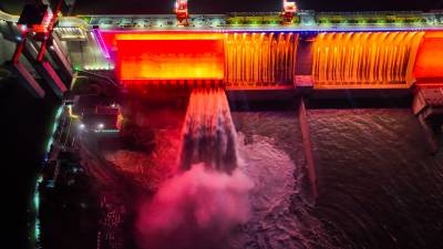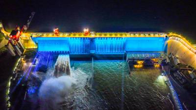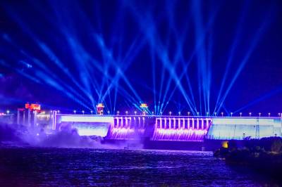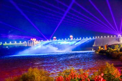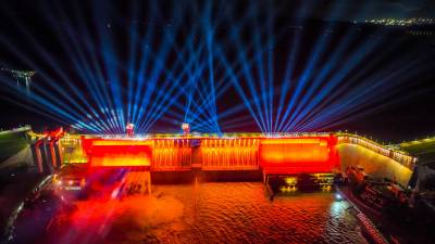 丹江口大坝泻洪灯光秀美景如画